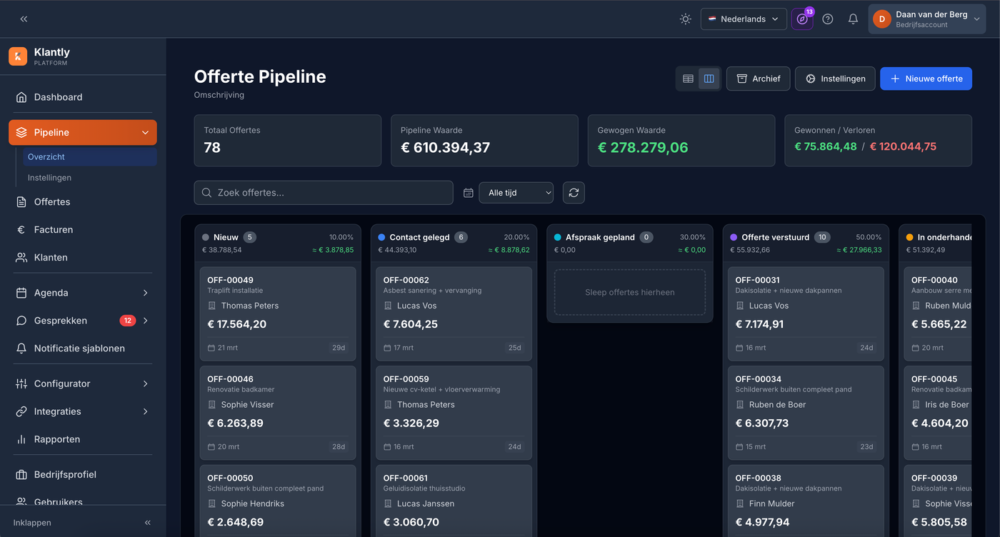 “Klanten reageren sneller op digitale offertes dan op PDF's. Onze acceptatiesnelheid is met 40% gestegen. Klantly heeft ons verkoopproces volledig getransformeerd.”